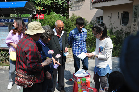 活动当天,咨询台围满了社区居民,志愿者们准备好资料,通过视频、实物展示和知识问答等形式,广泛发动社区居民畅谈绿色话题;向市民征集“环保金点子”,分享自己力所能及的环保举动;免费向居民发放环保雾霾口罩,鼓励大家用废旧物品置换绿色盆栽。当天,很多居民拿着家里用过的废旧饮料瓶、电池等一大早就赶到活动现场,放到志愿者们事先准备的收集箱里,还有不少路过的市民在进行了详细的咨询后,也对活动予以充分的支持和肯定。