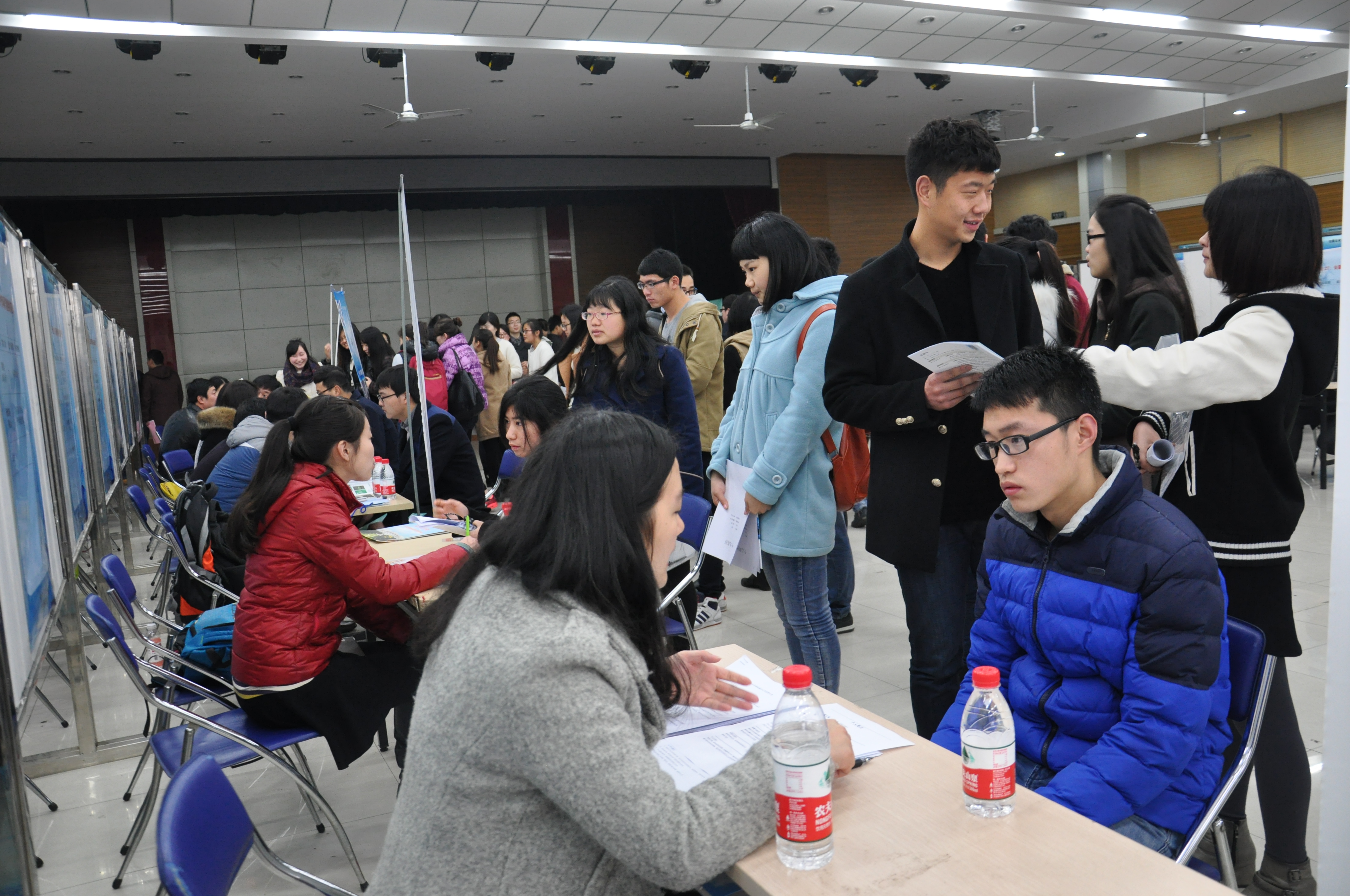 招聘会现场人头攒动,气氛热烈,几百名本院和相关专业的毕业生参加了招聘会,他们准备充分,认真选择职位,积极自荐。现场,招聘人员就公司概况、相关待遇、职业前景等情况与应聘者进行了充分的沟通与洽谈,有的单位对应聘学生进行了面试,也达成了初步的招聘意向。有人单位对我院2015届毕业生的生源质量和同学们的就业准备给予了肯定。