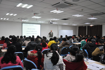 12月11日上午,美国加州大学伯克利分校Norman Terry教授应邀来我校为资源与环境学院、生命科学学院、茶与食品科技学院、工学院部分教师和研究生作了题目为“Use of Constructed Wetlands to Clean Up Selenium (Se) from Wastewater”的学术报告,报告会由资环学院院长花日茂主持。