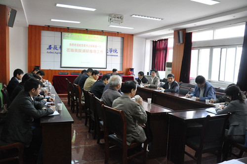 本网讯 11月6日下午,校党委书记宛晓春,校党委常委、副校长姚佐文到资环学院调研指导工作。校办公室、人事处、发展规划处、教务处、科技处负责同志参加调研。
