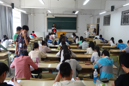 决赛中,通过拼音听写、词语解释以及要求选手写出含有颜色的五句古诗词等三种形式将比赛推向高潮。对于“惴惴不安”、“蝇营狗苟”、“杀手锏”……这些大家日常生活中常提到的词语,让参赛选手用很短的时间写出来,这对于有的选手来说还真就不是一件容易的事,有的选手信手拈来,有的选手则愁眉苦展。“dūn布的dūn字怎么写来着,我认识它啊”,“装biao的部首是衤还是礻?”,很多同学表示大部分原本“熟悉”的字词却无从下笔,这都是生活中鲜少使用手写,经常依赖于电子工具导致的。最终,来自2013级生态学专业的程婉莹凭借扎实的文字功底拔得头筹,获得一等奖,2012级环境工程专业的许颖、2013级农业资源与环境专业的鲁磊磊获得二等奖,2013级地理信息科学的陈鹏、2013环境科学与工程类专业的徐溯和张婷怡获得三等奖。