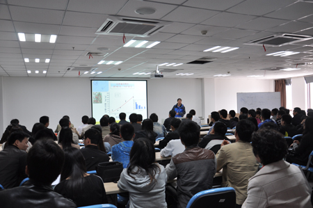 周东美研究员以“重金属污染土壤生态风险评价方法”为题详细介绍了土壤重金属污染生态评价方法的最新研究进展;王火焰研究员围绕“肥料养分真实利用率计算与施肥策略”问题,详细阐述了肥料养分利用效率计算存在的问题及科学计算方法;兰平研究员结合自己的研究工作,阐明了植物根系应答磷饥饿的蛋白组、转录组等组学研究的最新研究成果;褚海燕研究员报告了高寒生态系统微生物分布与预测方法。整场报告会学术气氛浓厚,师生积极交流互动,博得阵阵掌声。