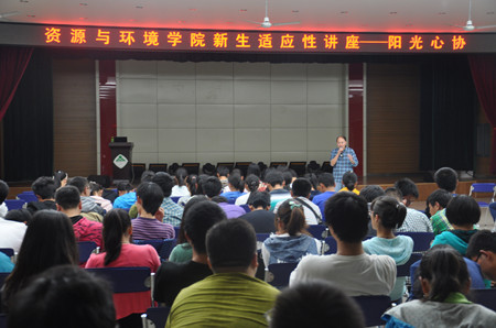 9月29日晚,资源与环境学院在欣苑四楼大学生活动中心举办了2013级新生适应性心理健康讲座,来自我校校医院副院长、国家二级心理咨询师洪涛老师针对新生入学的适应情况,作了题为“我的人生我做主”的专题报告,学院部分辅导员、全体2013级新生聆听了讲座。