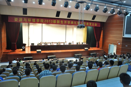 9月18日晚,资源与环境学院在新图书馆学术报告厅隆重举行了2013级新生开学典礼暨入学教育大会。学院党政领导刘凯、花日茂、马友华、郜红建出席会议,部分教研室主任、专业点负责人代表和新生班主任等参加了典礼。会议由副书记陈先玉主持。