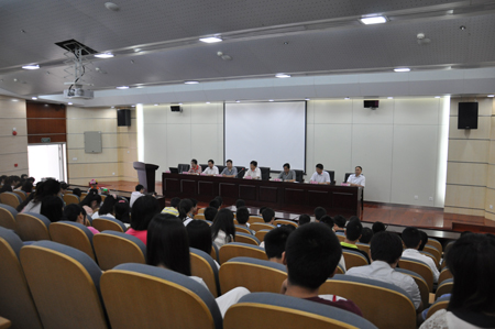 6月27日上午,资源与环境学院在新图书馆二号学术报告厅隆重举行2013届本科毕业生欢送会,学院党政领导刘凯、花日茂、马友华、郜红建以及教研室主任、部分教师和毕业生班主任出席了欢送会,会议由学院党委副书记陈先玉同志主持。