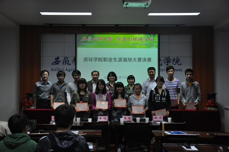 为进一步提高大学生职业规划意识,帮助他们学习职业规划知识,掌握职业规划的基本方法,5月17日下午,资源与环境学院在十教418举行了第八届大学生职业生涯规划大赛。校学工部(处)副处长王琼,信息与计算机学院党委副书记曹俊、外国语学院党委副书记姚莉以及学院党委副书记陈先玉应邀担任评委。本次比赛共收到307份职业生涯规划书,经过预选和初赛,有9位同学进入决赛,经过现场PPT陈述和必答题两个环节,最终12环境安全类的姜婧和王帆两位同学获得一等奖;赛后,王琼副处长对对本次比赛进行点评和指导。