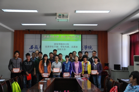 会上,院团委老师对学院2012年度学生工作做了简要总结,宣读了2012年度受表彰的“优秀学生干部”、“优秀学生代表”、“优秀青年志愿者”名单,并为获奖同学们颁发了荣誉证书。