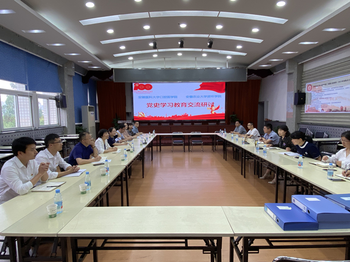 安徽医科大学口腔医学院党委书记王润玲对王琼一行表示热烈欢迎,双方简要介绍了各自学院整体办学和党建工作情况。安徽医科大学口腔医学院党委副书记陈然介绍了学院党史学习教育开展情况、特色举措和主要成效。