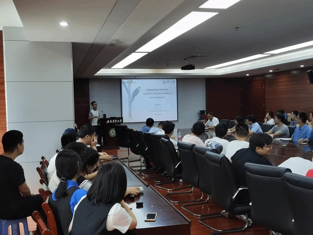 本网讯 6月20日下午,浙江大学研究员,胡凌飞研究员应邀来我院开展学术交流,在学院510会议室作题为“Integration of plant volatiles into plant defense and resistance ”的学术报告。会议由巫厚长教授主持,我院教师以及生态学本科生和研究生参加了会议。
