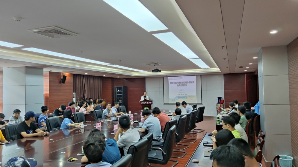 报告会上,王艳芬教授围绕植物-土壤-土壤生物间的碳氮耦合关系、不同营养级生物互作等方面分析了微生物变化与生态系统功能之间的相互关系。报告中以我国典型草地生态系统为研究对象,阐释了气候变化对高寒草地植物氮素获取的影响、植被退化对植物与微生物互作关系的影响,发现了添加凋落物可以改变氮周转微生物功能群和可利用氮素供应。