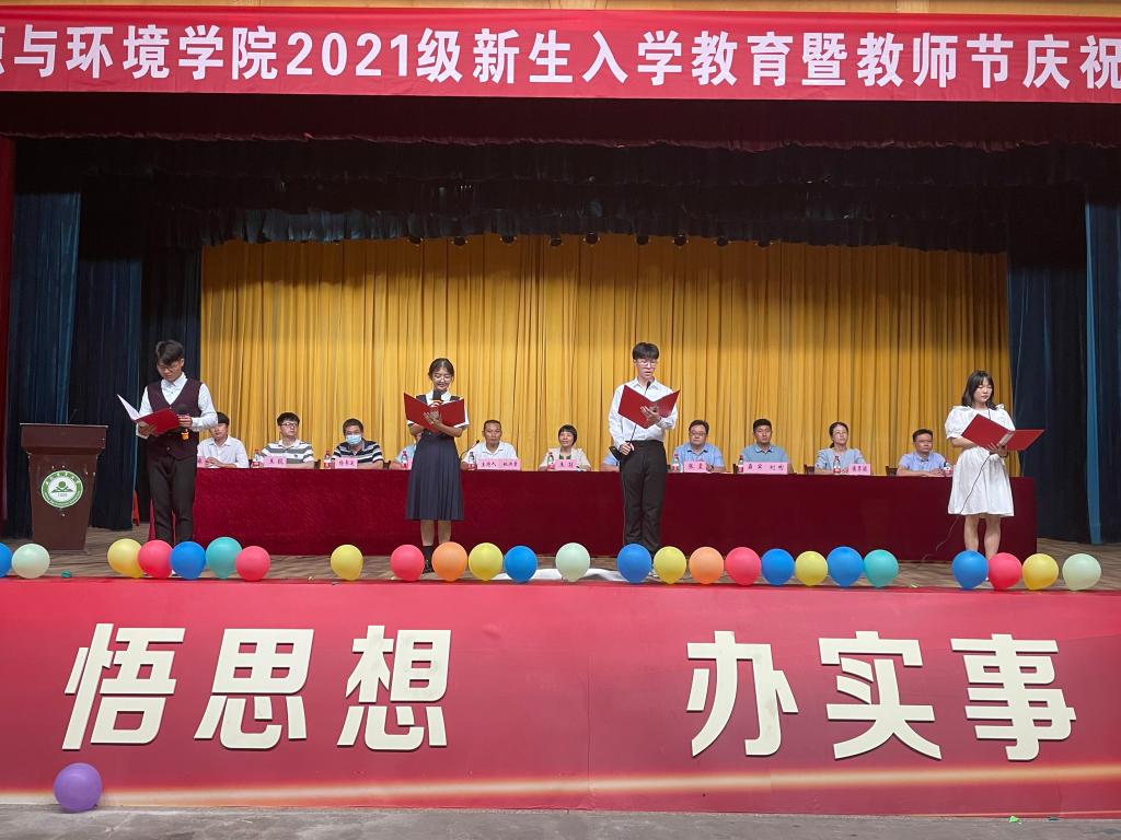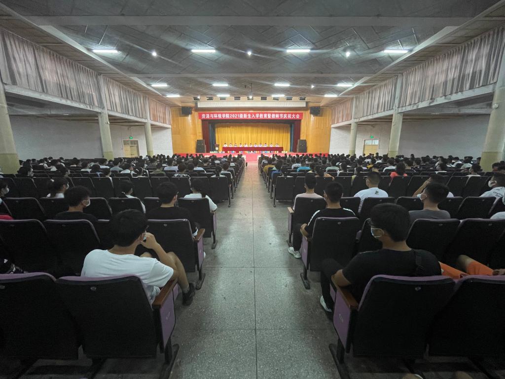 本网讯 9月10下午,资源与环境学院在校大礼堂举行2021级新生入学教育暨第37个教师节庆祝大会。学院党政领导、系部主任、全体教师、老生代表以及2021级全体新生等参加了会议。会议由学院党委副书记、副院长、纪委书记姚洪章主持。