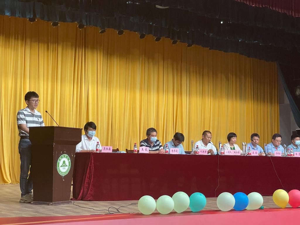 会议举行了新进教师入职仪式,首届“最美教师”获得者为新教师佩戴校徽并合影。