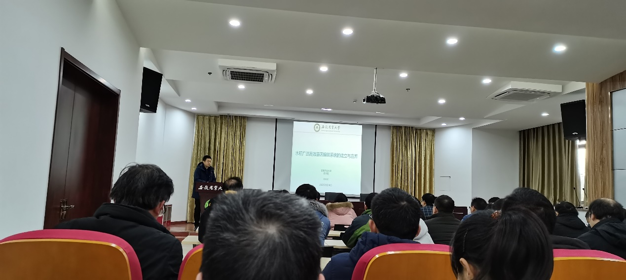 会上,魏鹏程教授作题为“水稻广适高效基因编辑系统的建立与应用”学术报告,他以构建碱基编辑编辑文库,实现植物体内重要农艺性状基因关键功能域氨基酸高密度诱变和定向进化为切入点,围绕科学问题的提出、实现途径、结果表达三个层面进行了系统阐述,并就科研选题、科学问题发掘和科研思路等方面作了经验交流,为青年教师科研工作提供了示范指导。