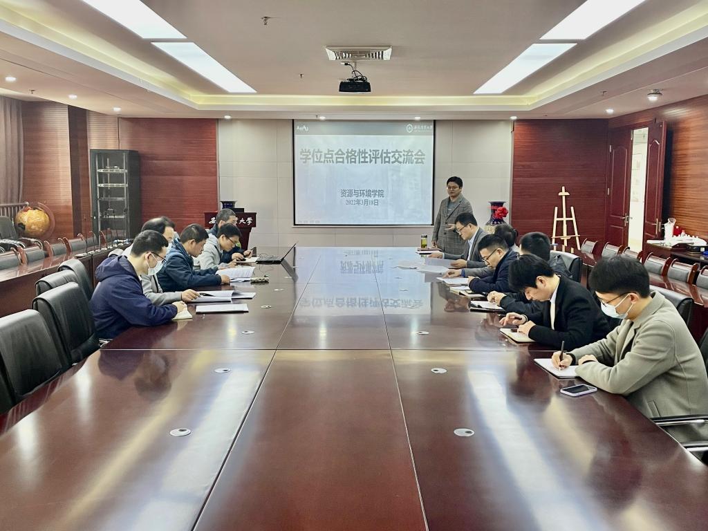 本网讯 3月18日上午,资源与环境学院组织召开学位点合格性评估交流会,各学位点负责人和秘书参加会议,会议由副院长叶新新主持。