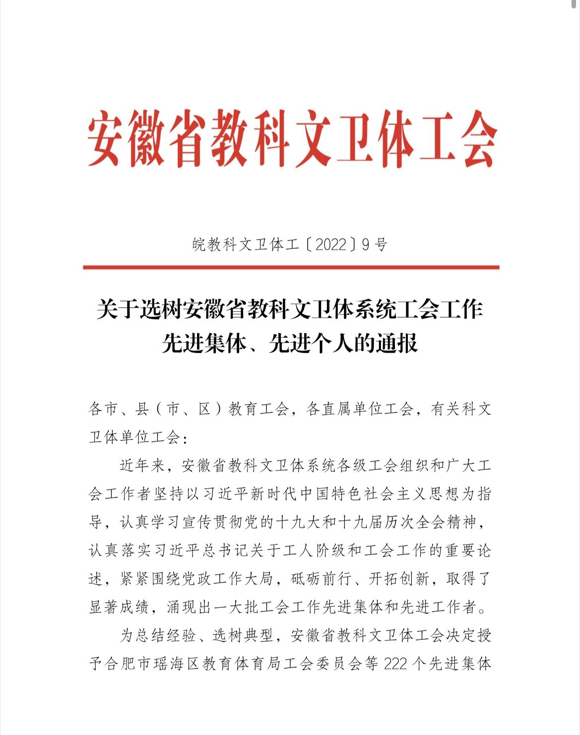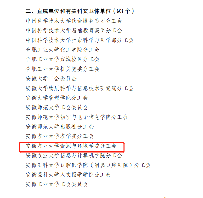 本网讯 4月12日,安徽省教科文卫体系统工会工作先进集体和先进个人选树结果揭晓,资源与环境学院分工会获评省教科文卫体工会系统“先进集体”。