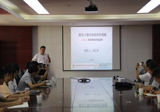 本网讯 9月18日上午,资源与环境学院邀请中国科学院南京土壤研究所所长沈仁芳研究员进行学术交流与指导,并在中西部综合楼510会议室作“酸性土壤可持续利用策略--培育耐铝水稻品种”的学术报告,会议由学院院长吴祥为教授主持,学校相关师生100多人参加报告会。