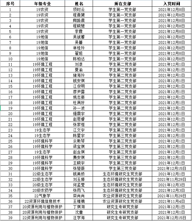根据个人申请、组织考察,经学院学生党支部支委会研究,拟同意项时云等39位同学按期转正,现公示如下。在公示期内,可通过信函、电话或直接到学院办公室反映公示对象的思想品质、现实表现、培养教育和发挥作用等方面的情况。