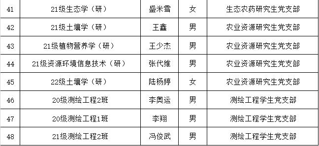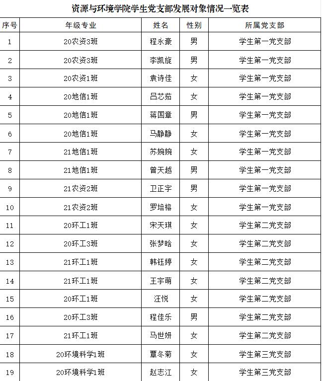 根据本人申请、组织培养和考察,经学院学生党支部支委会讨论,拟确定程永豪等48位同学为建党对象,现将有关情况公示如下。在公示期内,欢迎广大党员、师生通过信函、电话或直接到党委反映公示对象的思想品质、现实表现、培养教育等方面的情况。公示无异议后,报学院党委会研究确定本期发展对象。