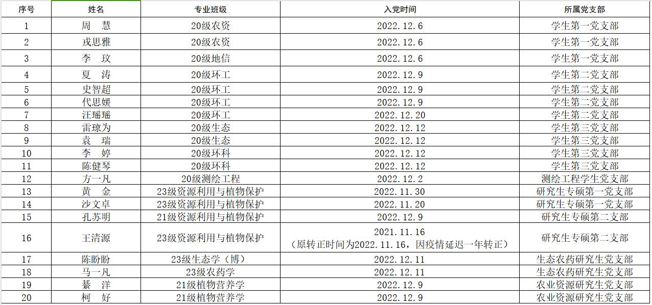 根据个人申请、组织考察,经学院学生党支部支委会研究,拟同意周慧等20位同学按期转正,现公示如下。如有异议,请在公示期内通过信函、电话或直接到学院办公室反映公示对象的思想品质、现实表现、培养教育和发挥作用等方面的情况。