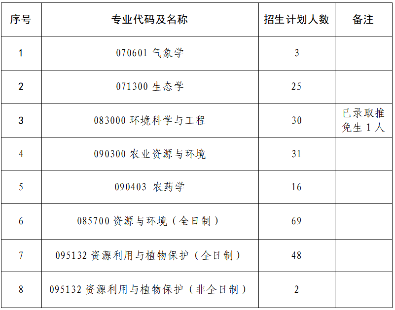 通 知 | 资源与环境学院2025年分专业硕士研究生招生计划