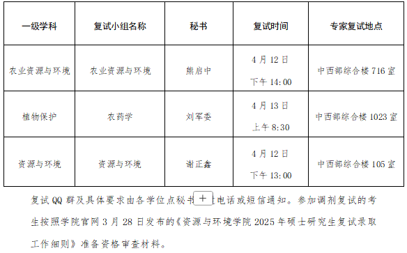 公 示 | 资源与环境学院2025年硕士研究生招考(二次调剂)复试安排及考生复试名单