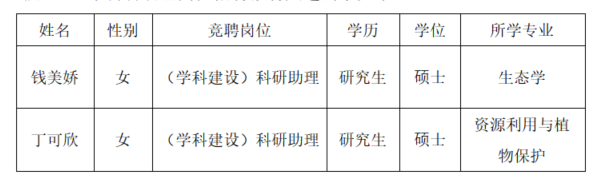 资源与环境学院2025年科研助理岗位招聘(第三批)拟聘人选的公示