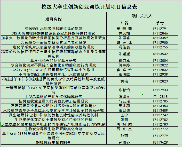 经学院组织专家小组审定,资源与环境学院2019年校级大学生创新创业训练计划项目评审结果公示如下。