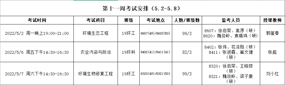 通 知 | 资环2021-2022学年第2学期第十一周考试安排