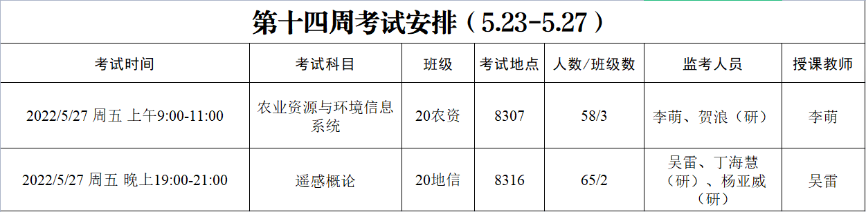 通 知 | 资环2021-2022学年第2学期第十四周考试安排