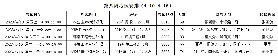 考试安排 | 资源与环境学院2022-2023-2第八周考试安排