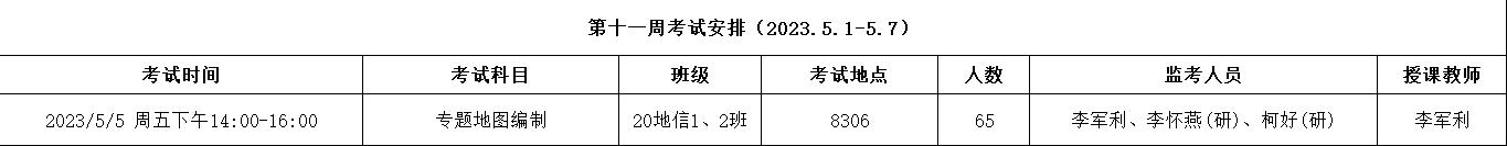 考试安排 | 资源与环境学院2022-2023-2第十一周考试安排