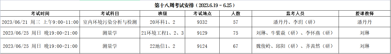 考试安排 | 资源与环境学院2022-2023-2第十八周考试安排
