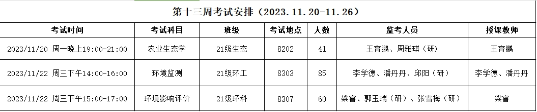 考试安排 | 资源与环境学院2023-2024-1第十三周考试安排