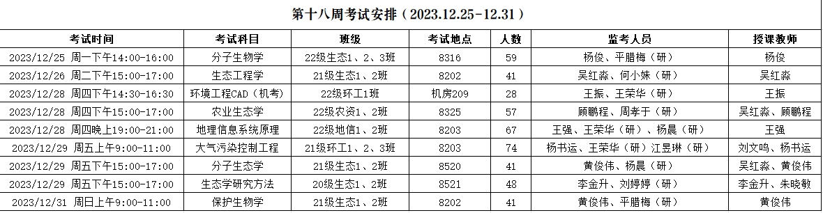 考试安排 | 资源与环境学院2023-2024-1第十八周考试安排