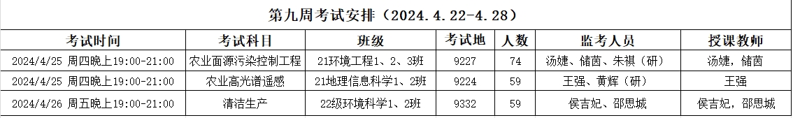 考试安排 | 资源与环境学院2023-2024-2第九周考试安排