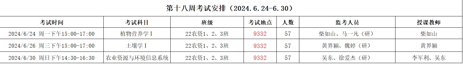 考试安排 | 资源与环境学院2023-2024-2第十八周考试安排