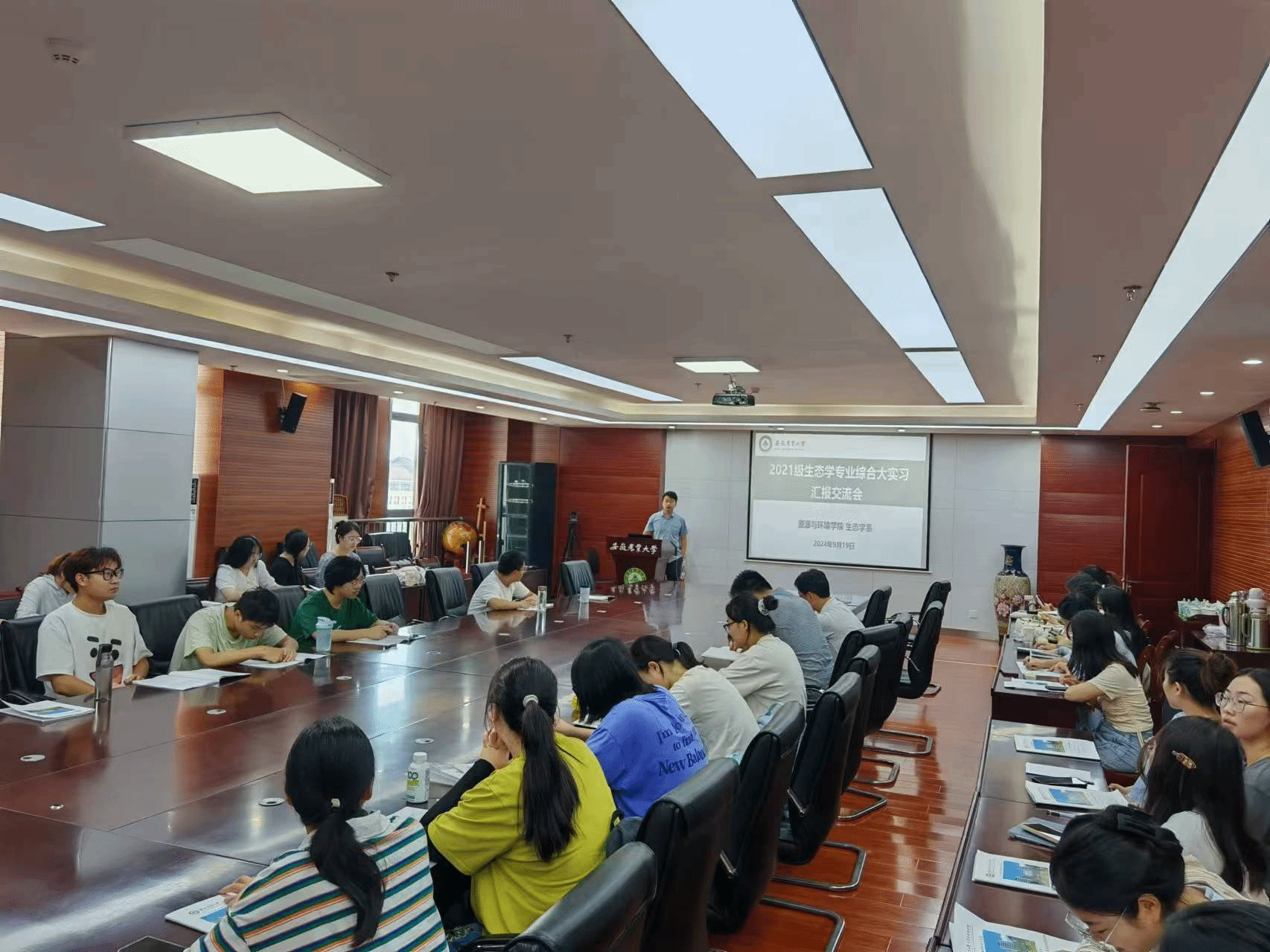 本网讯 9月19日上午,2021级生态学专业综合大实习汇报交流会在中西部楼510举行。系部教师和2021级全体学生参加会议,会议由系主任吴红淼主持。