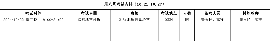 考试安排 | 资源与环境学院2024-2025-1 第八周考试安排