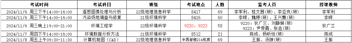 考试安排 | 资源与环境学院2024-2025-1 第十周考试安排