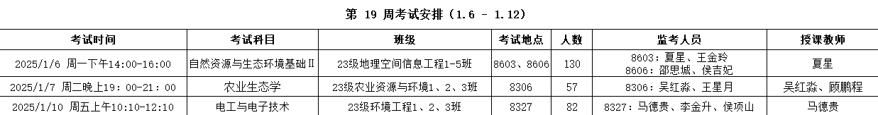 考试安排 | 资源与环境学院2024-2025-1 第十九周考试安排