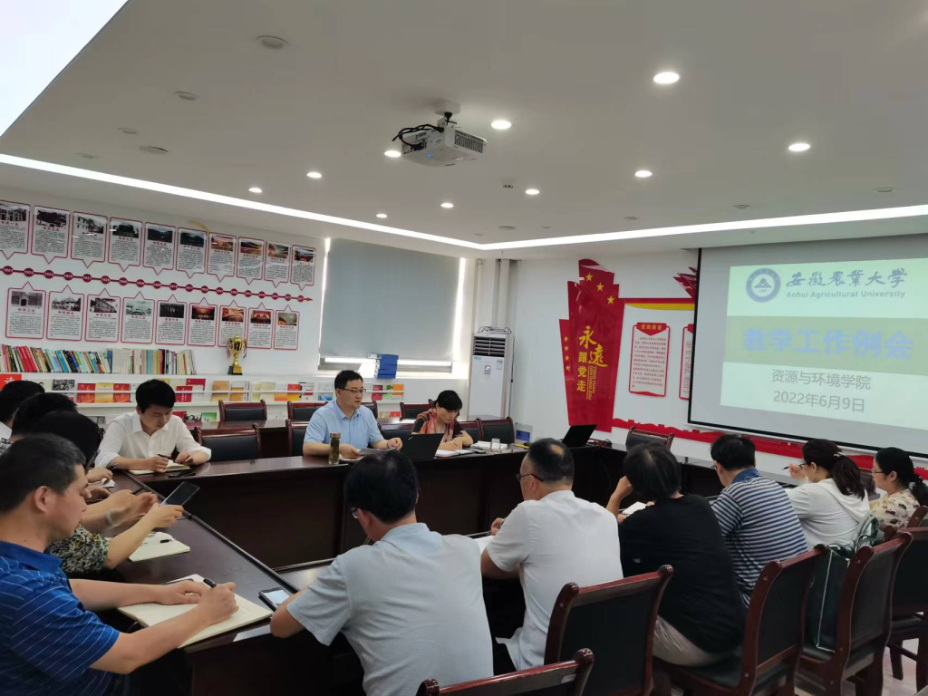 本网讯 6月9日下午,资源与环境学院在中西部综合楼南楼503室召开学期教学工作例会。学院党委书记王琼、学院教学督导、系部主任副主任、专业负责人、教学秘书参加会议,会议由教学副院长张震主持。