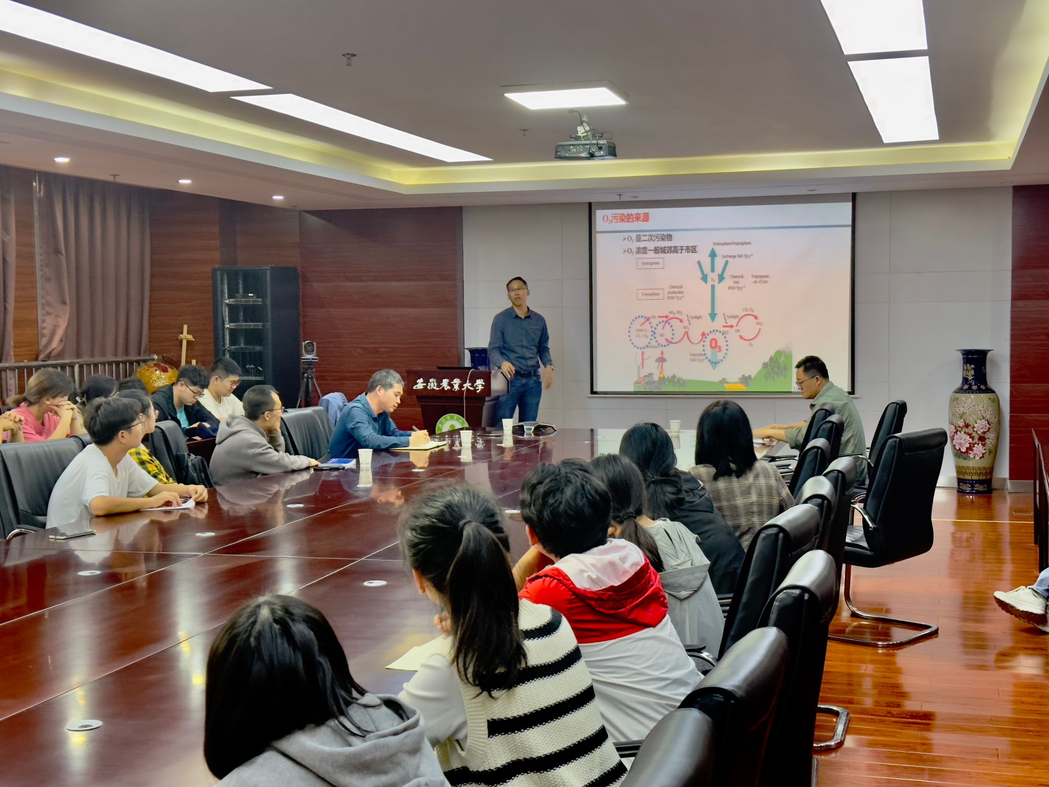 本网讯 11月2日,资源与环境学院于中西部综合楼南楼510会议室举行“绿洲”生态环境高峰论坛学术报告会,特邀教育部知名专家特聘教授、南京信息工程大学应用气象学院院长冯兆忠教授作题为“地表臭氧污染对农田生态系统的影响进展与展望”的学术报告。校发展规划处处长、资源与环境学院院长吴祥为教授参加了报告会并主持。学院分管教学副院长及50余名师生参加了报告会。