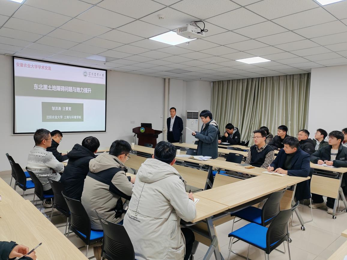 邹洪涛作题为“东北黑土地地力障碍问题与提升”的报告,阐述了当前东北地区黑土地存在的主要问题,创造性地提出通过耕作层深松耕蓄水保肥、利用有机肥控污提质、控制土壤侵蚀固土保肥、调整优化结构养地补肥等措施对黑土地保护利用,学院师生与邹洪涛就相关问题进行了深入的交流讨论。