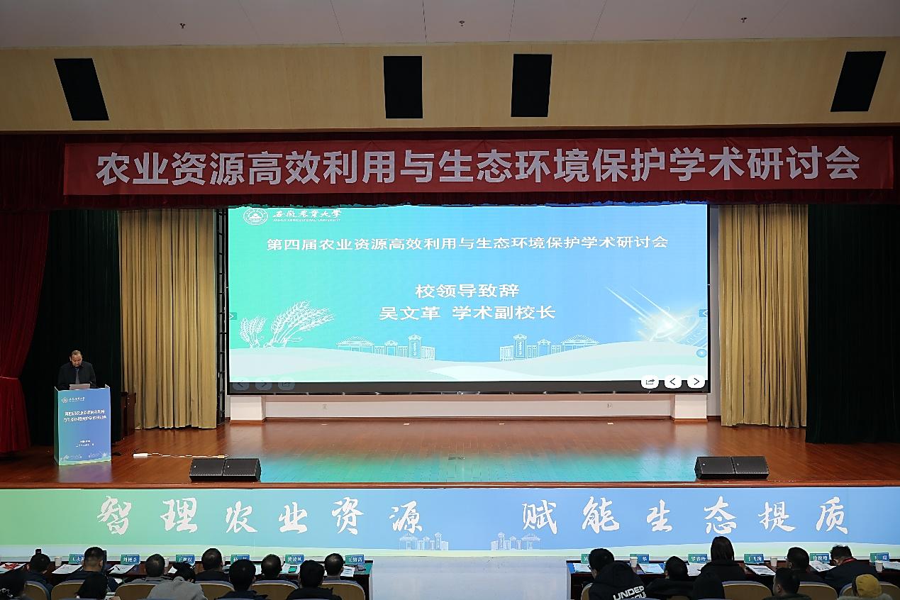 本网讯 2025年11月18日至20日,第四届农业资源高效利用与生态环境保护学术研讨会在图书馆第一报告厅召开,学术副校长吴文革研究员出席开幕式并致辞,发展规划处处长王瑞、研究生院院长张梁、科技处副处长何撼东等校直部门负责人,以及来自全国多所高校和科研机构的专家学者、师生代表参加开幕式。资源与环境学院院长张震教授主持开幕式。