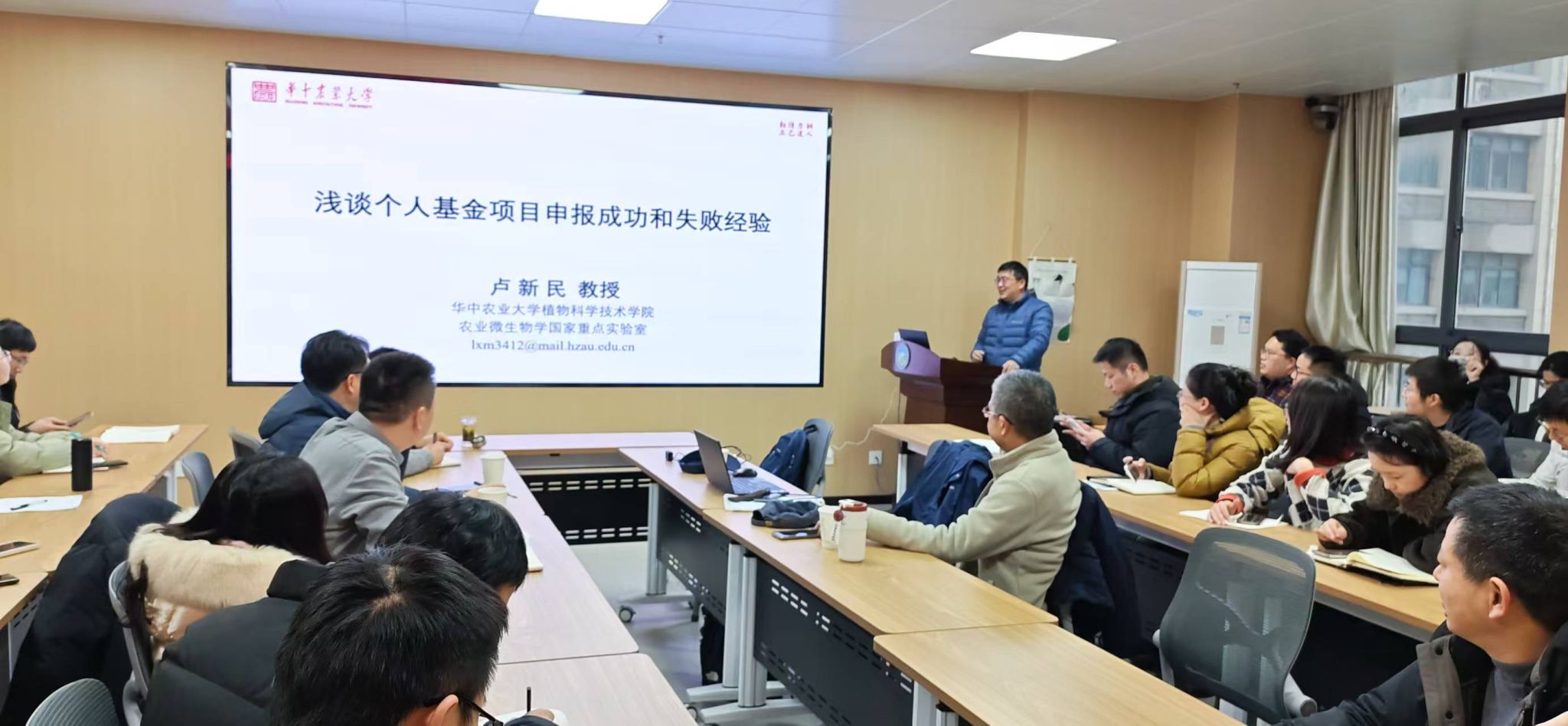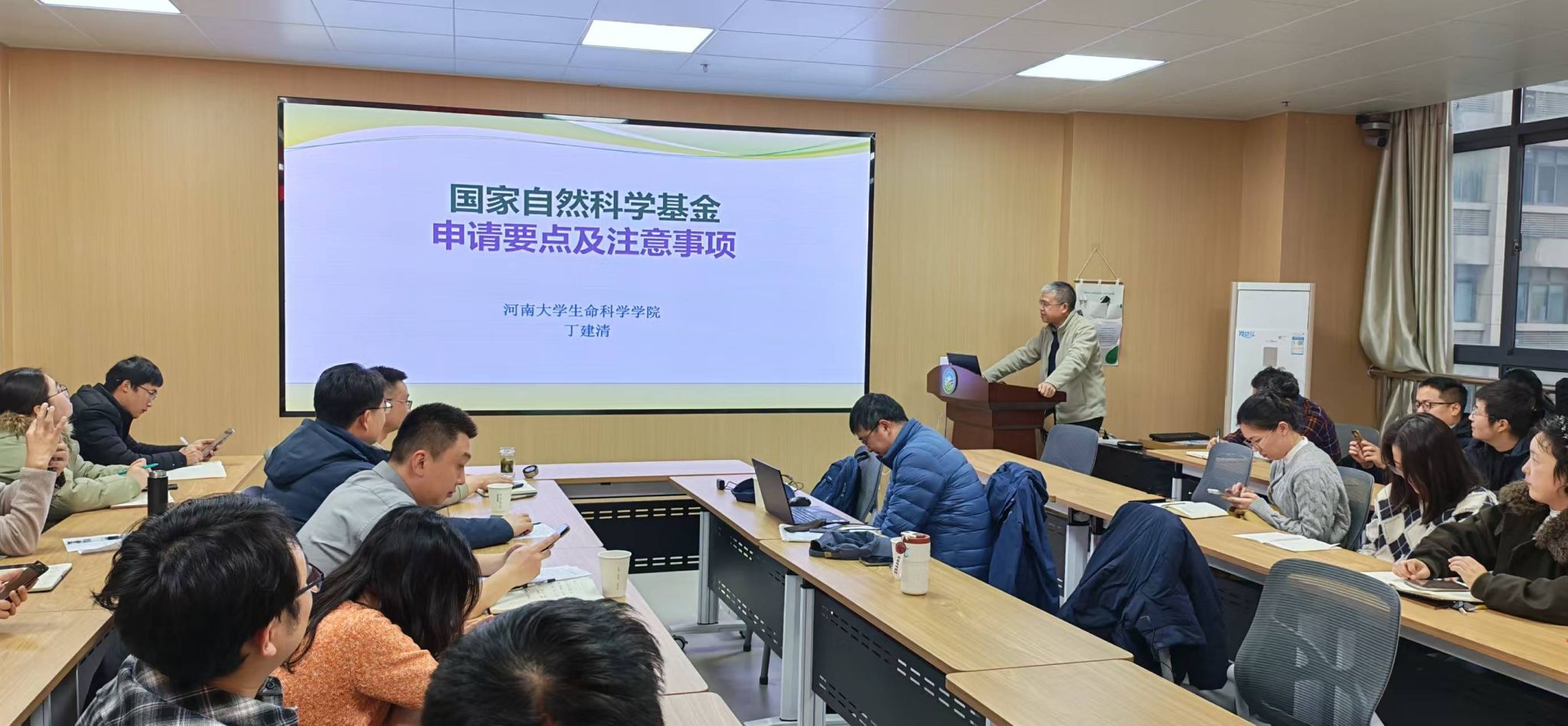 本网讯 1月26日下午,资源与环境学院在中西部综合楼716会议室举行国家自然科学基金辅导报告会,河南大学丁建清教授和华中农业大学卢新民教授应邀参会,科技处副处长何撼东主持报告会。学院40余名教师及博士后参会。