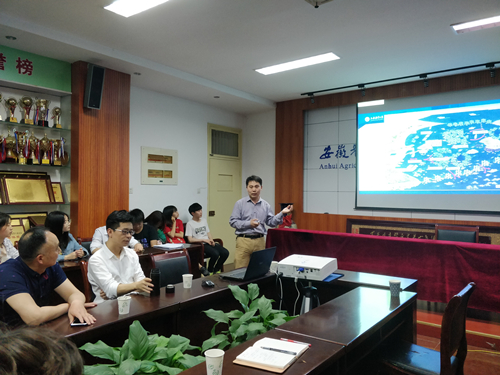 本网讯 5月25日下午,应资源与环境学院邀请,上海海洋大学张硕、张俊波两位副教授来校开展学术交流,张硕、张俊波分别作题为《海洋牧场研究与建设发展概况》、《三维海洋生态系统数值模型构建与应用》的学术报告,学院相关学科老师、研究生和本科生参加了报告会,报告会由学院党委副书记兼副院长张晓伟主持。