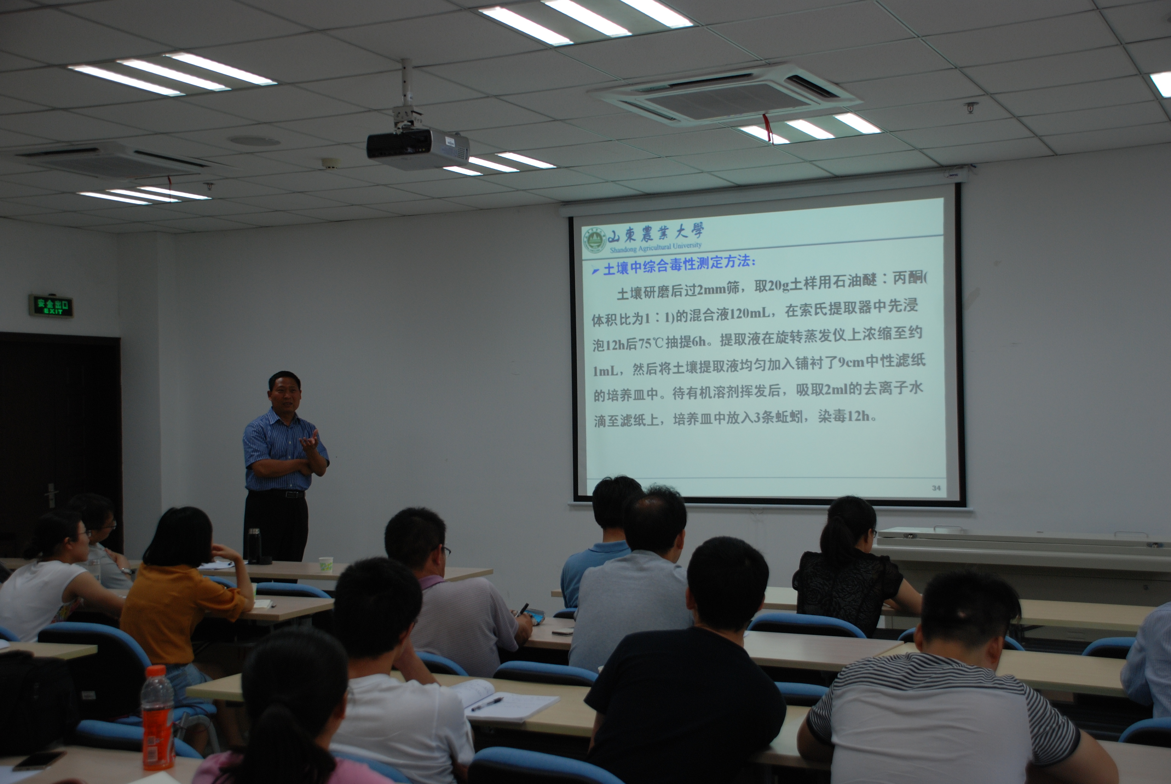 朱鲁生教授作了题为“硫丹污染土壤的微生物降解及去毒效应”的学术报告。报告会上,朱鲁生教授首先介绍了硫丹的对环境的危害、污染现状、以及微生物降解的研究背景;其次他详细介绍了自已实验室筛选的三株降解菌对硫丹的降解作用、降解过程的推断、以及在修复土壤污染中的应用状况;最后与研究生们交流了本校研究生的学习感悟,他认为研究生应端正学习态度,努力工作,做到兴趣与能力相结合,将更有助于个人的发展。