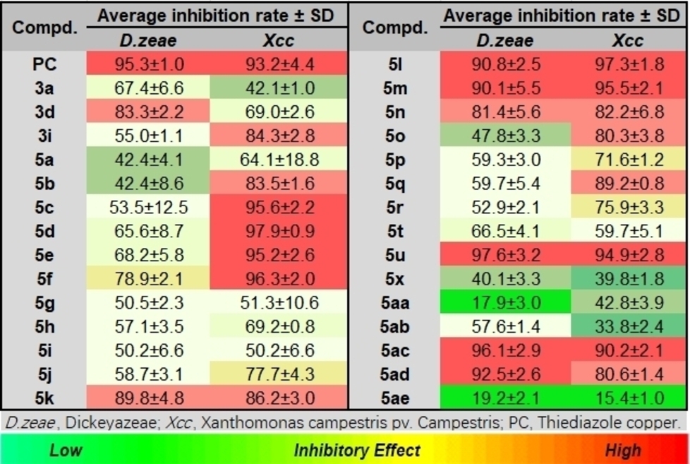 我校资环学院李亚辉团队前期针对绿色农药创制中先导骨架的创新和农药作用机制或靶标的创新两个科学问题,利用β-SS键消除机理,发展了一类新型双边过硫化试剂DSMO。团队利用该试剂设计合成了43个全新化合物,其中3个目标产物对水稻基腐病原细菌的EC50为(10.3–17.6 mg/L)优于对照药剂噻菌铜(24.3 mg/L),8个目标产物对野油菜黄单胞菌的EC50为(6.9–24.6 mg/L)优于对照药剂(30.2 mg/L)。关于这类化合物在农药开发中的进一步应用,目前正在进行中。