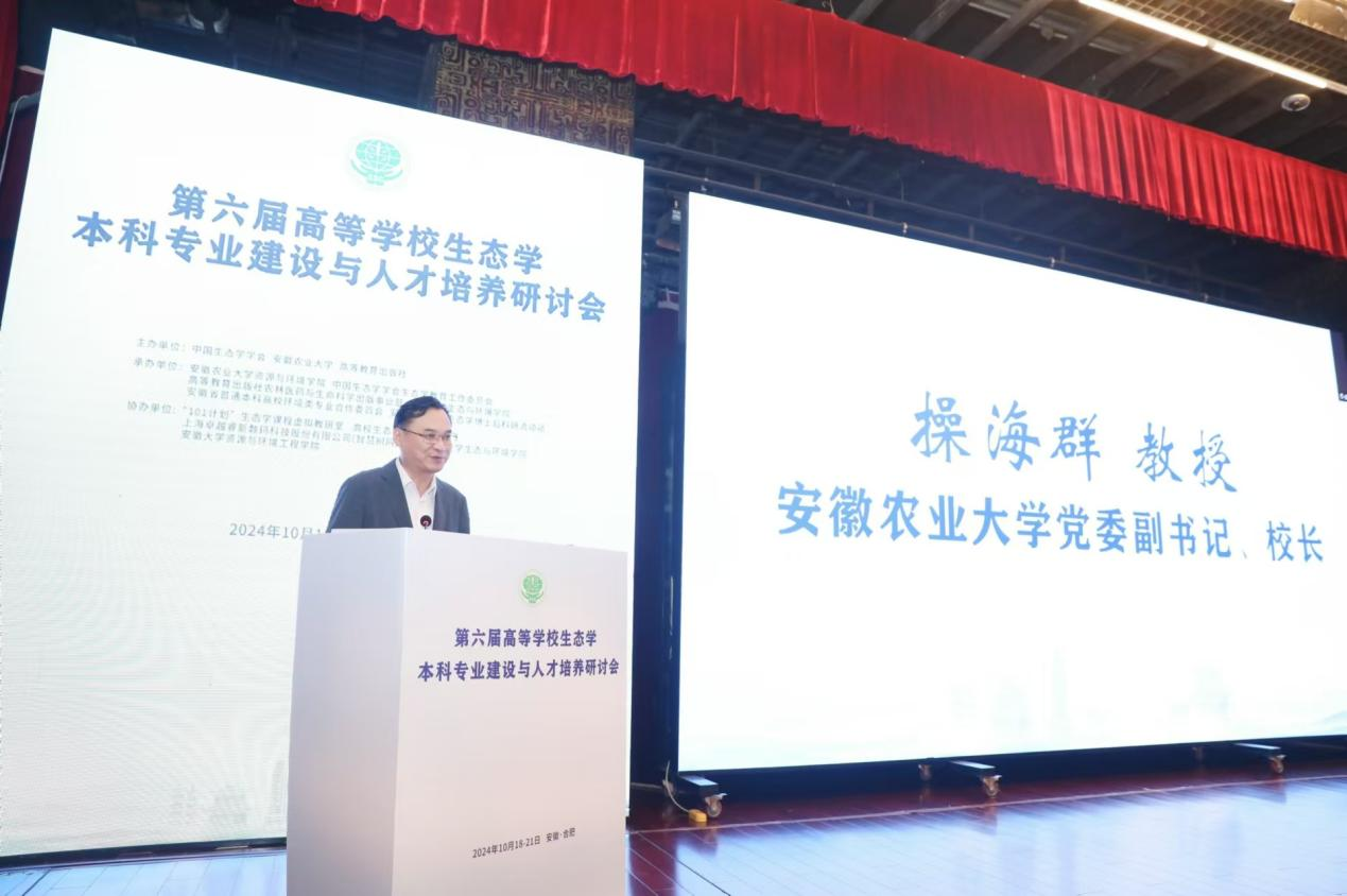本网讯 10月18日-21日,由安徽农业大学、中国生态学学会、高等教育出版社共同主办的“第六届高等学校生态学本科专业建设与人才培养研讨会”在合肥成功举办,来自北京大学、浙江大学、中国农业大学、兰州大学、云南大学、中山大学、南京农业大学、西安建筑科技大学、厦门大学、南京农业大学、华南农业大学等54所高校、单位的170余名从事生态学研究和教学的专家、教师参加了研讨会,会议由安徽农业大学资源与环境学院承办。校党委副书记、校长操海群参加开幕式并致辞。