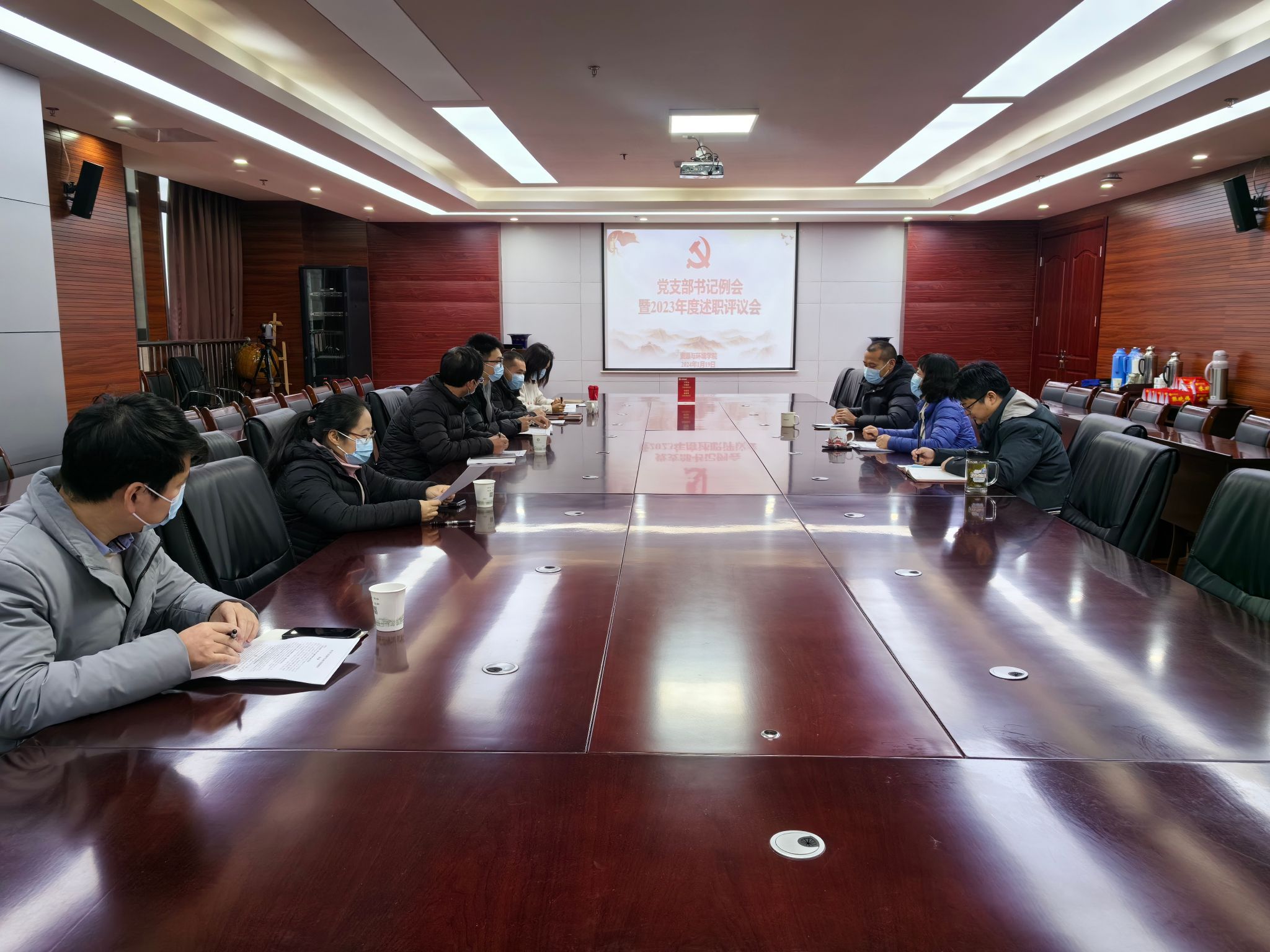 会议传达了校七届七次党代会、七届四次教代会、十届四次工代会暨2024年全面从严治党工作会议精神,要坚持党的全面领导这个根本保证,务虚谋实答好“资环三问”,做实做细做好学院2024年各项工作计划,以高质量党建不断赋能学院各项事业高质量发展。